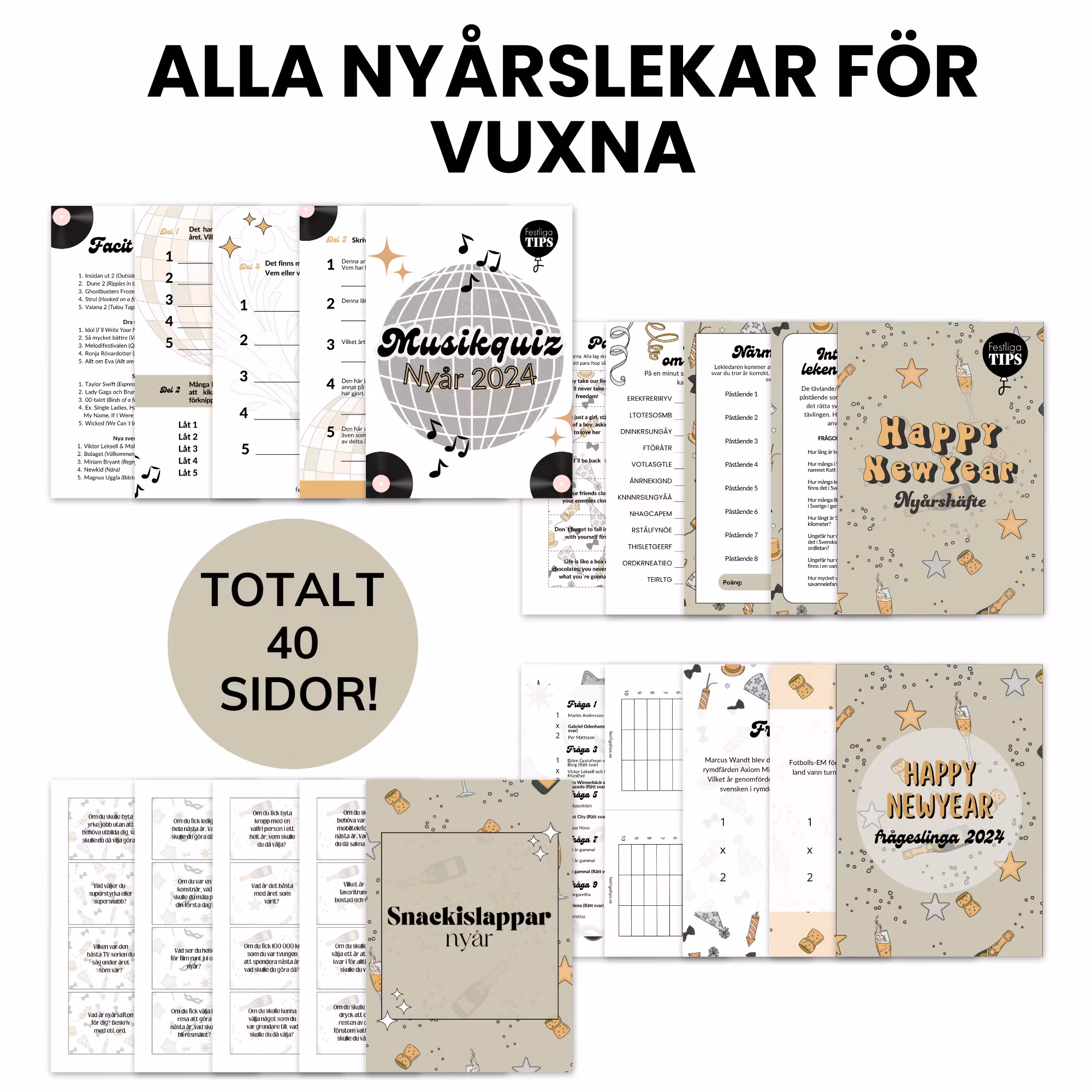 ALLA våra nyårslekar för vuxna! Paketet innehåller:
