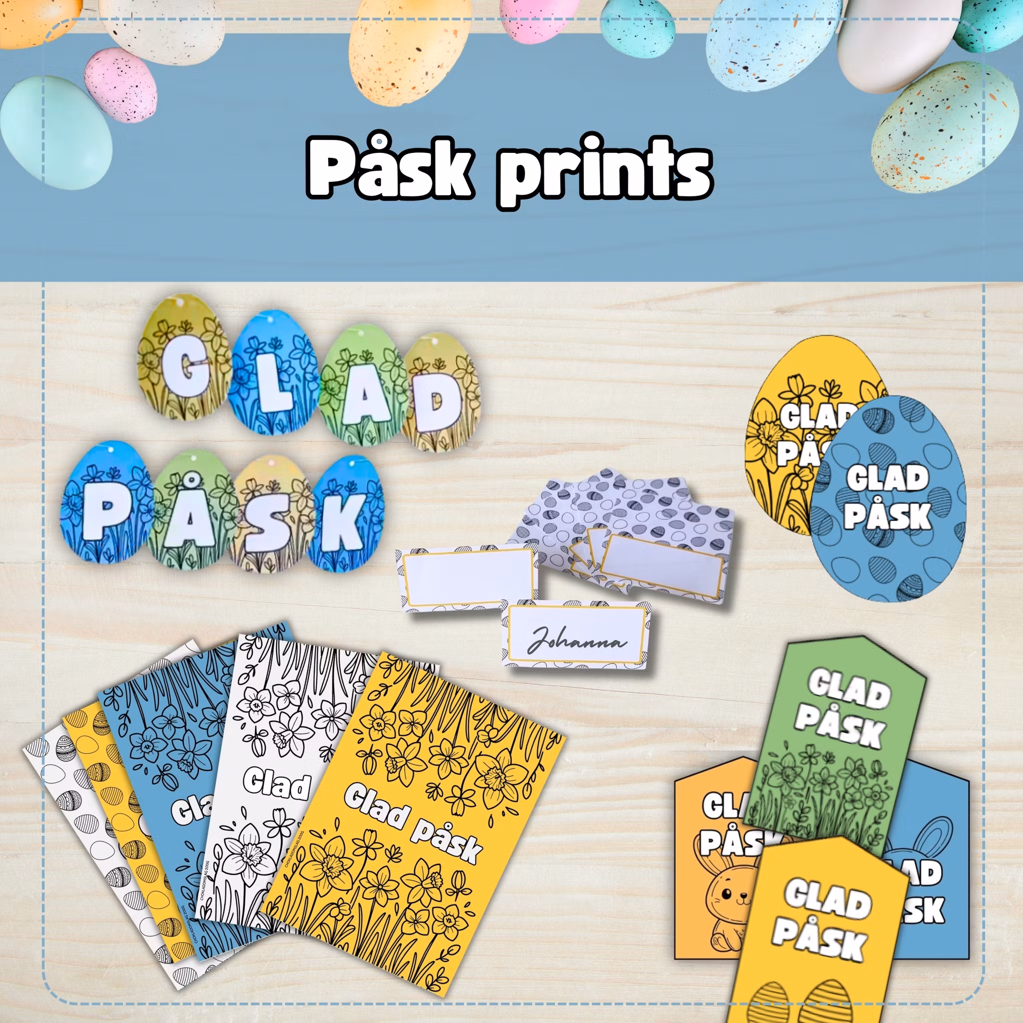 Ett häfte med roliga påskprints som man kan använda som dekoration eller till påskpresenter. Häftet innehåller: