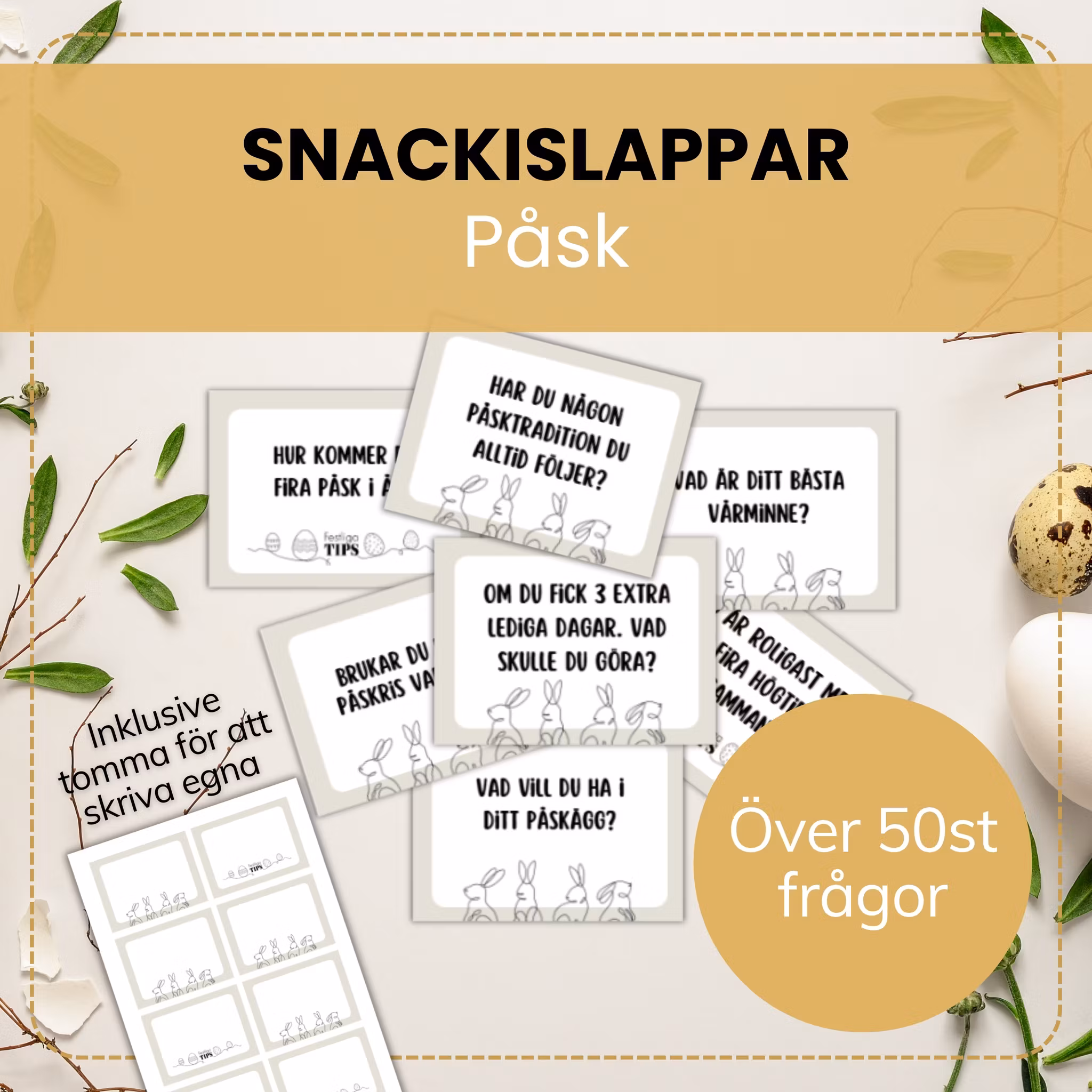 Här hittar du roliga samtalsämnen med påsktema! Perfekt till påskfirande. Passar perfekt på ex. jobbet eller familjens påskmiddag. Den här produkten är en PDF (digital) fil som kommer direkt till mailen efter köp.