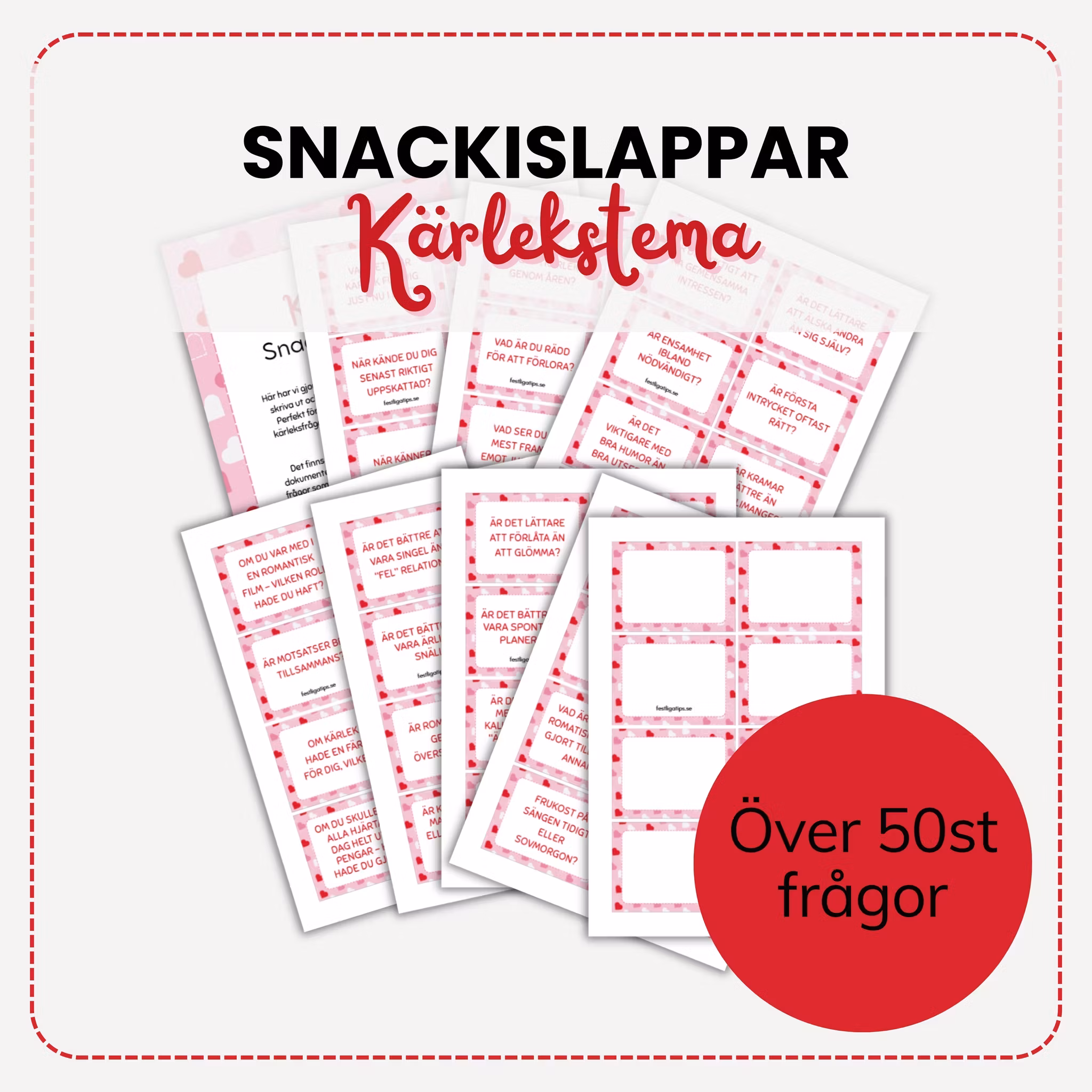 Ett häfte som innehåller över 50 roliga samtalslappar med kärlekstema!